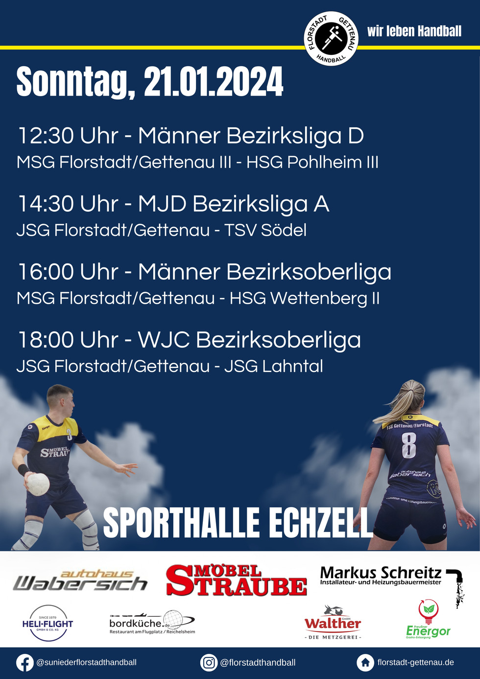 Ausblick aufs WochenendeBN15. Jan. 20241 Min. LesezeitUnter folgendem Link sind die anstehenden Spiele unserer Mannschaften zu finden:nuLiga Handball – VereinHeimspiele: